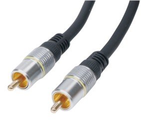 Digital koaxiales doppelt geschirmtes Kabel mit 24k Goldüberzogenen Cinch Steckern für digitale und analoge A/V Signale. SPEZIFIKATIONEN: Kabel: Doppelt geschirmt 75 Ohm Farbe: schwarz Länge: 5,00m Stecker: 1 x Cinch <-> 1 x Cinch vergoldet